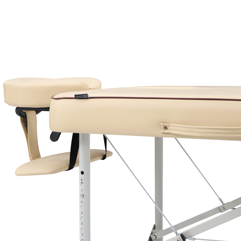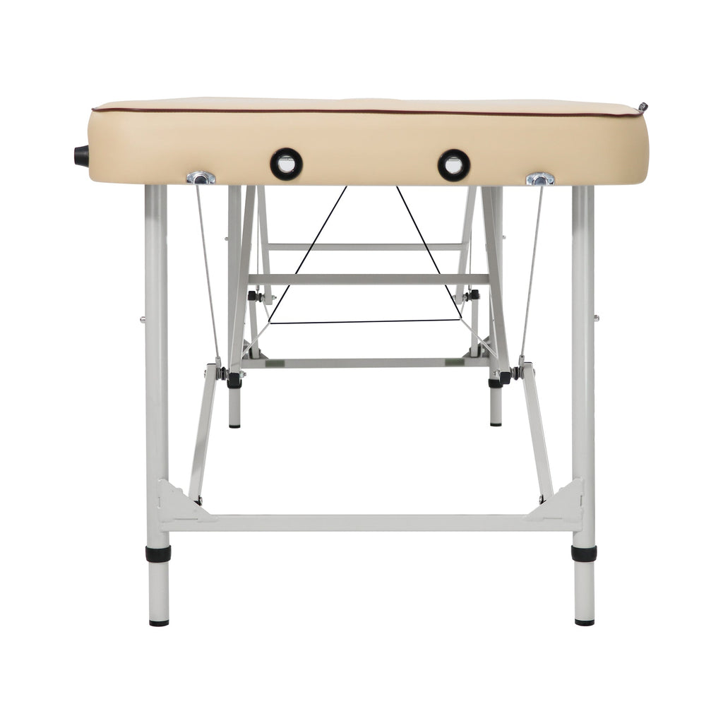 For anyone looking for an ultralight, portable massage table with classic design, Master Massage Breeze is a great choice. While the aircraft-quality aluminum frame ensures the table itself weighs only 26.2 lbs. And folds compactly to be transported and stored, the Breeze can still support a working weight of 650lbs. The 2" Thick cushion of ultra soft foam is covered with a Cream PU upholstery, which is oil- and water-resistant, and backed by extra durability. Exclusive Duo-Plane hinges reinforce the strength for the center of the table, ensuring the durability for years. Properly Shaped Face Port (with plug) preferred by many professionals for comfort or for use in smaller room settings. Accessories include: adjustable face cradle, face comfort pillow, plug for the face port, contoured armrest shelf, comfort half round bolster and a deluxe carrying case.