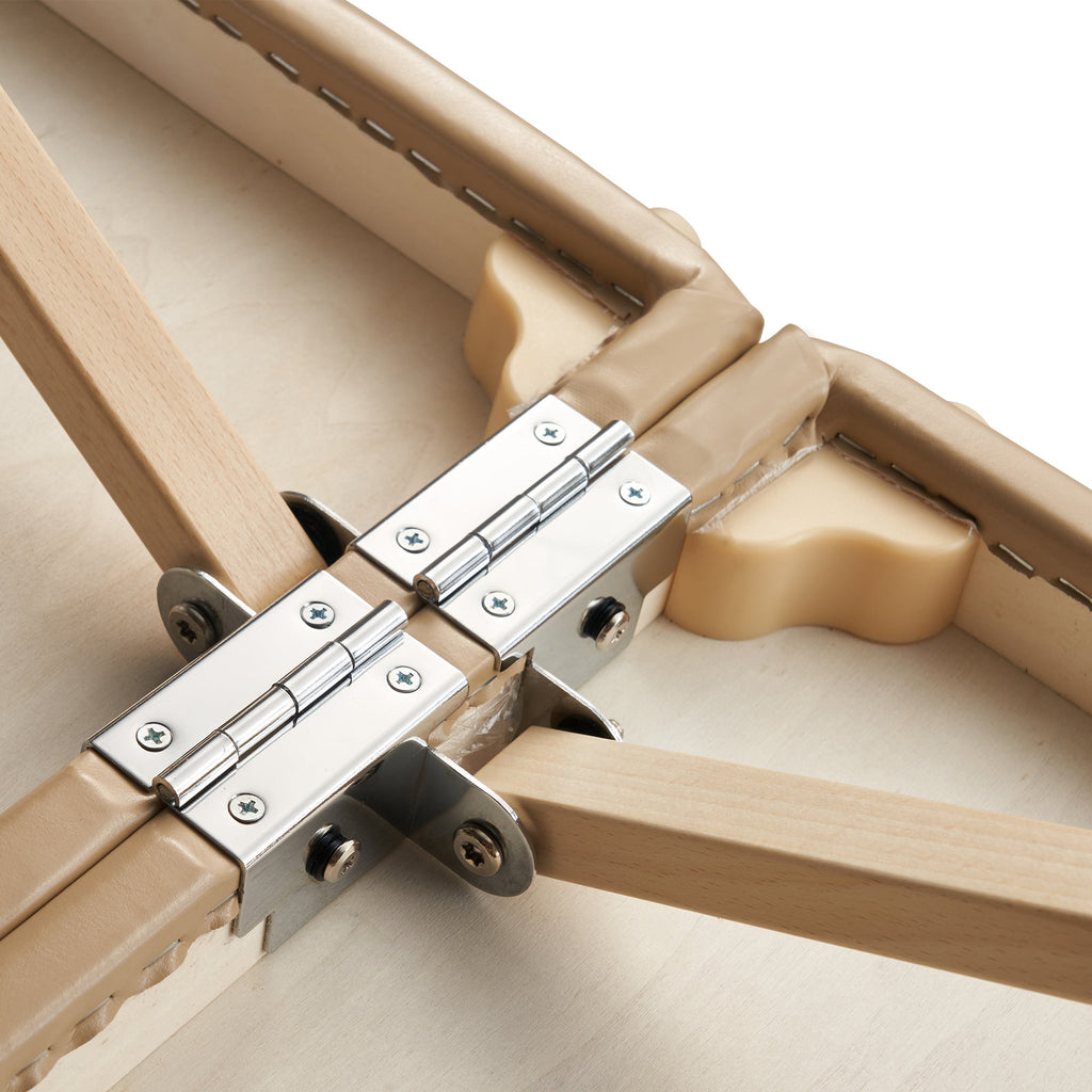 The Balboa portable massage and exercise table is everything the busy professional needs and nothing they don't. The beautifully crafted rich brown luster upholstery is oil- and water-resistant, CFC-free, and features a denim-like reinforcement for added durability. The upholstery nicely complements the light natural hardwood legs protected by a Dura Seal finish. Setting up the foldable salon table is a breeze with the no assembly required, and the Shiatsu Cable Release allows the folding lash bed to lay flat on the floor. Auto-Lock leg system and the numbered leg adjustment holes. Strength and stability are a key advantage of the Balboa folding spa bed and several additions help: the leg brace stabilizer bar, Clevis Block leg attachments, and Duo-Plane center hinges all add strength. The Balboa portable spa table's square corners have been proven by researchers to relax shoulders more than standard tables. All wood used in this foldable lash bed is free of formaldehyde and carcinogens in compliance with the California Air Resources Board (CARB) law. This package includes an ErgonomicDream face cradle, memory face pillow, and a single pocket carrying case.