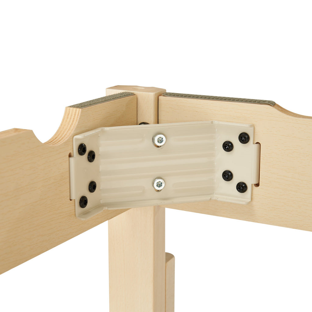 - Top corners are rounded to prevent injury.