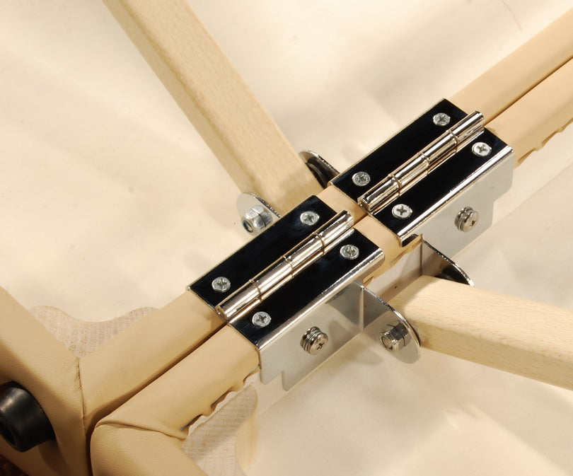 • All wood used in the table is formaldehyde- and carcinogen-free—meets California Air Resources Board (CARB) law • Germany made backrest mechanism allows many position changes, quiet and sturdy. • 2.5" thick cushion of Multi-Layer Small Cell foam, which is denser and thicker than average foam • Reiki plate of the table also allows professionals to work comfortably closer for neck and legwork, and to even work from a seated position. • Oil & Waterproof, CFC-free, Silky Soft PU Upholstery – with denim-like reinforcement backing for extra durability,backed by a 5 Year Guarantee • 1,000lbs. Aircraft-grade steel support cables give the table a working capacity of 750lbs • Northern hardwood legs protected by rich, hi-gloss Dura Seal finish • Auto-lock leg system easily sets table up strong in seconds • Patented Aotu-lock hinges for maximum strength at the center of the table • Square corners, proven by anatomical research to relax shoulders more than standard tables • Numbered leg adjustment holes provide quick, easy and accurate height adjustment • Clevis Block leg attachments guarantee unbreakable leg support • Non-skid, non-mark foot pads prevent floor damage • Stabilizer bar assists in closing and opening the table, while adding overall strength • PU upholstery backed by a 5 Year Guarantee • Folds compactly for easy mobility and storage • Double luggage-style table closure straps