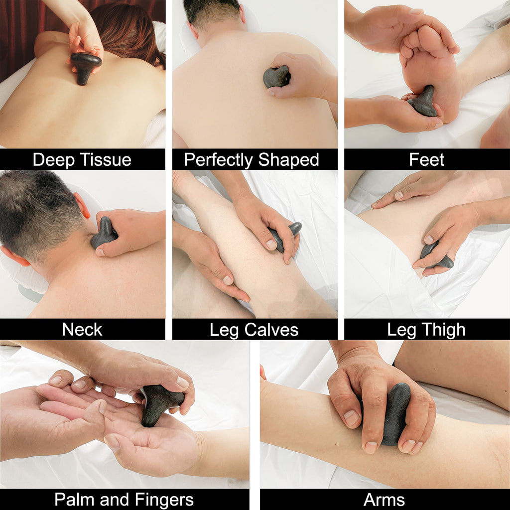 Our mushroom shape pressure point stone is a deep tissue massage tool ergonomically designed to protect practitioners from occupational injuries. It allows therapists more focused deeper work with less physical effort. The contoured hand grip encourages neutral wrist positions while working. Basalt is excellent for holding heat for long periods of time and has very low radiation which makes this rock a much more healthy and beneficial stone for use. We use natural Black Basalt rock as the only material, all stones were shaped and polished by traditional handcraft, no wax, dyestuff, chemicals were applied during the production. The mushroom shape pressure point stone is particularly efficient on the body where certain muscles are particularly tense.